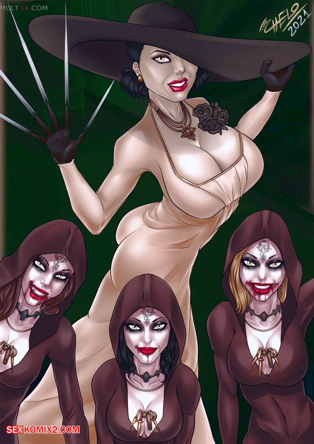 Этот порно комикс взят с сайта sexkomix2.com - Порно комикс Димитреску и ее дочери.